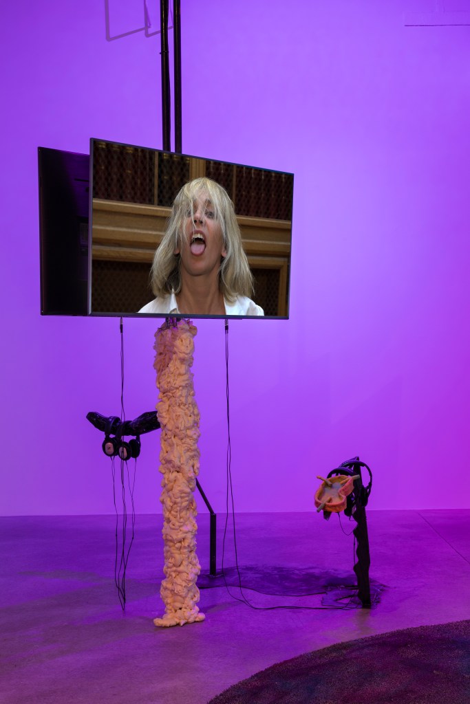 Welcome to the six-channel version of The Gobernment. Please don’t be alarmed by the apparent titular mis-spelling. It’s intentional! The intrusive “b” condenses several key dimensions of Schulman’s exhibition-cum-art tv series: the multilingualism of cosmopolitan discourses (“v” is uttered as “b” in Spanish); the body’s wondrously elusive performances (nasal congestion’s highjacking of pronunciation); and deception (the strategic use of misspelling to evade online surveillance). In French, the language in which the project was initially developed, the verb “berner” means to deceive or delude, adding weight to this last reference.
