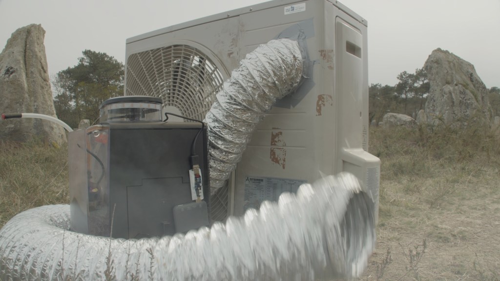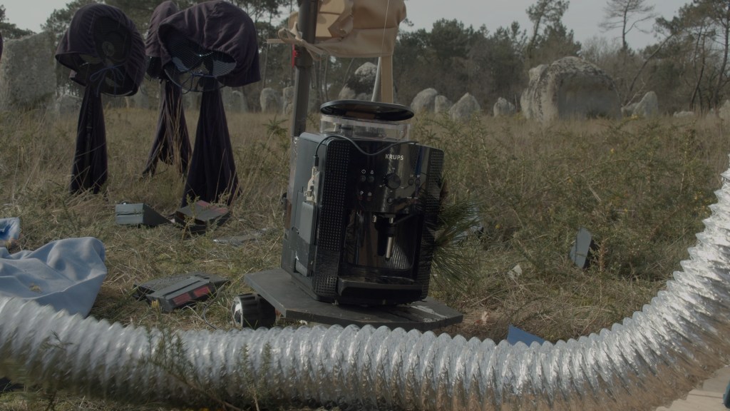 This fiction, filmed on the Carnac alignments, in Brittany, France, shows us an extinct posthuman world where a group of household electric appliances have acquired a series of affects. Together they stage a series of epic and mitologic tragedies where an air conditioner named AC suffers the adventures of being poor and orphaned in a loveless world in the midst of climate change. The film is interpreted in different ancient languages and idioms that gather the area from ancient times such as breton, gallois, welsh, latin and french.