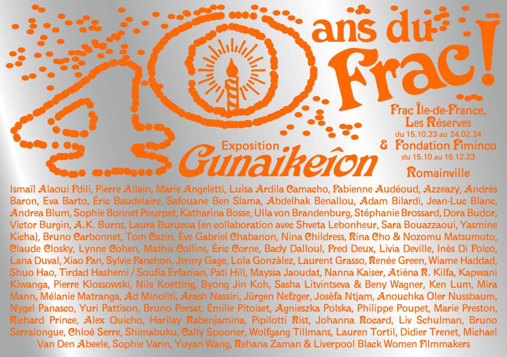 15.10.23 – 24.02.24 : Gunaikeîon. https://www.fraciledefrance.com/40-ans-du-frac-gunaikeion/Frac Île-de-France, les Réserves & Fondation Fiminco, Romainville.